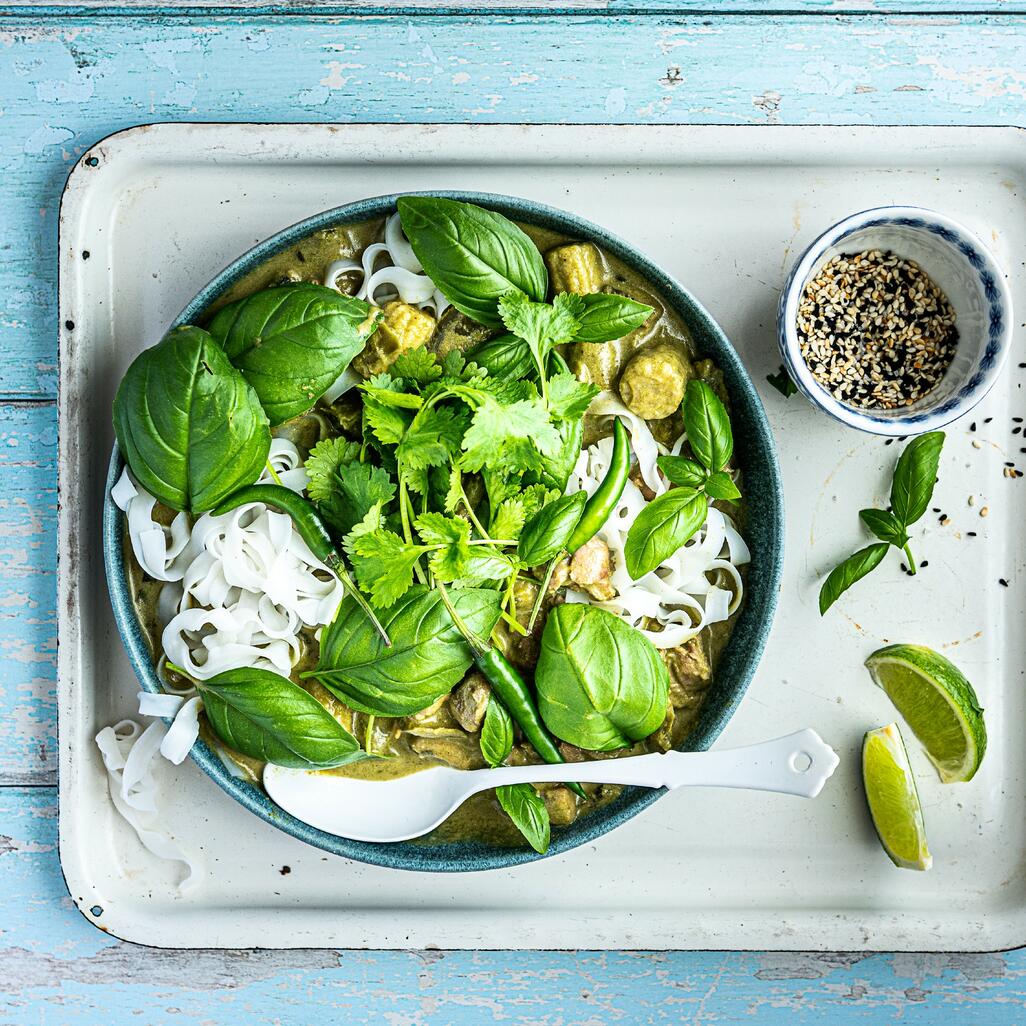 Experience the vibrant flavours of Thailand with our Executive Chef Jeff Baker's signature Thai Green style curry, with morsels of succulent free-range chicken cooked together with coconut in a light and full-flavoured sauce. Chicken stock and Thai basil provide a depth of flavour for the green curry, while a squeeze of fresh lime juice brings zest to the mix, and delicately balances the richness of the traditional shrimp paste. This is a fantastic option for nutritious and enjoyable evening meals, or a simple and fragrant lunch.